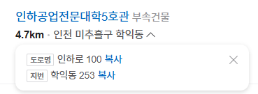 네이버 지도로 시험에서 안내한 도로명+대학교 5호관을 찍고 들어갔는데....