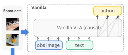 + action chunking: 일반적인 VLA를 확장하여 길이 의 행동 시퀀스(Action sequences)를 예측하도록 한다.