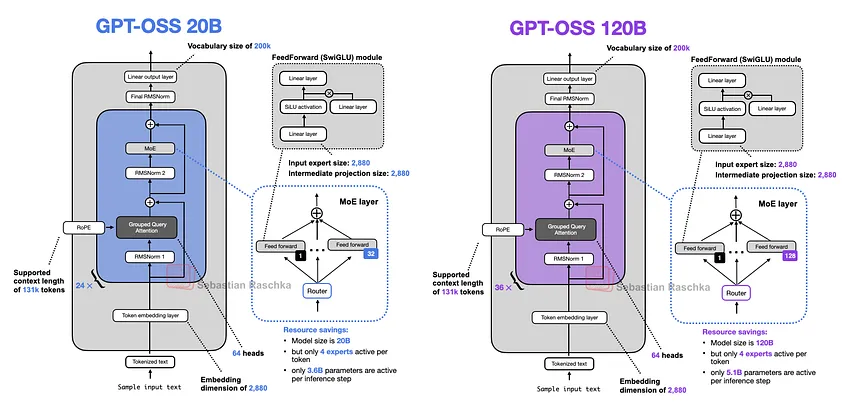 gpt-oss에 대한 더 자세한 정보 및 GPT-2와의 비교는 다른 gpt-oss 아티클에서 확인할 수 있다.