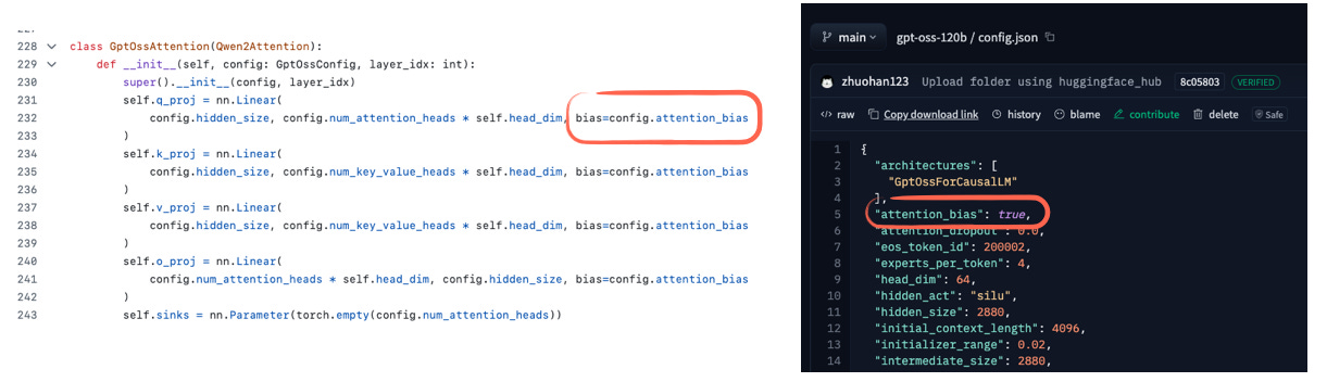 [Figure 29: gpt-oss models use bias units in the attention layers. See code example here.]