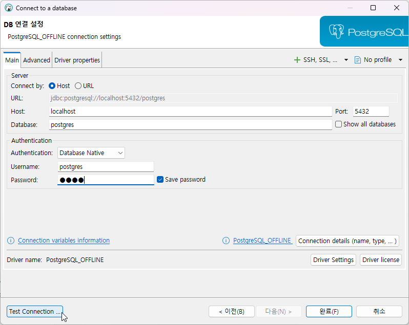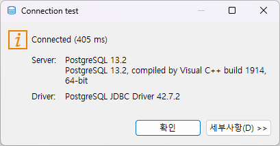 Test Connection 을 클릭하면 정상적으로 접속이 되는 것을 확인할 수 있습니다.