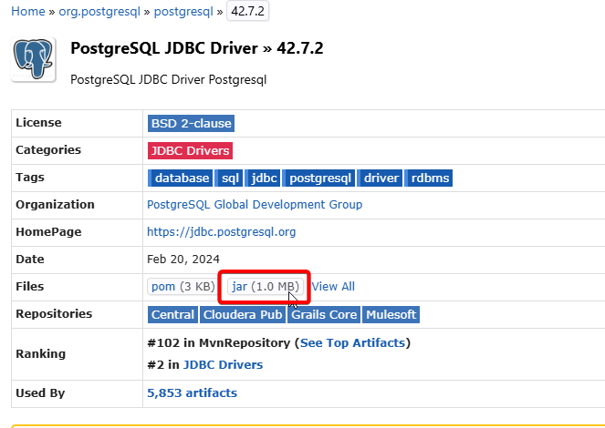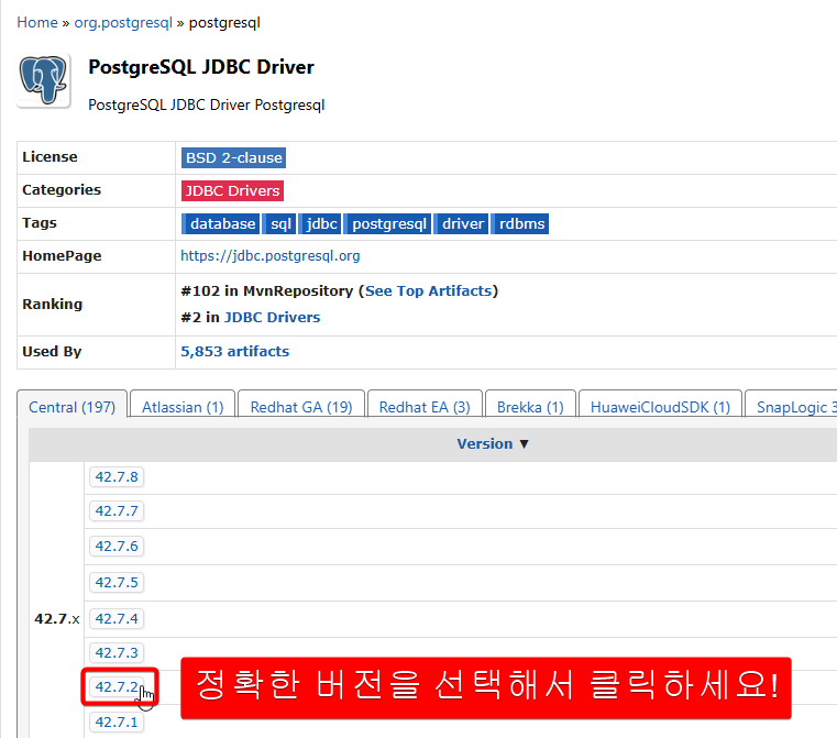 여기서 버전은 아까 DBeaver 의 Libraries 탭에서 확인한 버전과 동일한 것을 클릭해야 합니다.