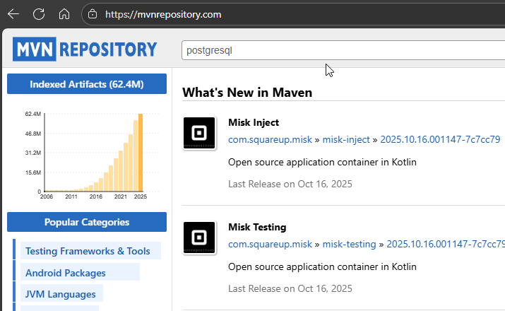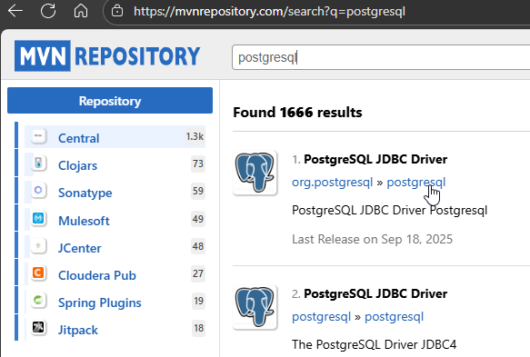 https://mvnrepository.com/ 에 접속해서 필요한 라이브러리들을 차례대로 검색하고 jar 를 다운로드 받습니다. 다운로드 받는 상세방법은 아래 3장의 그림을 보면서 익혀주세요.