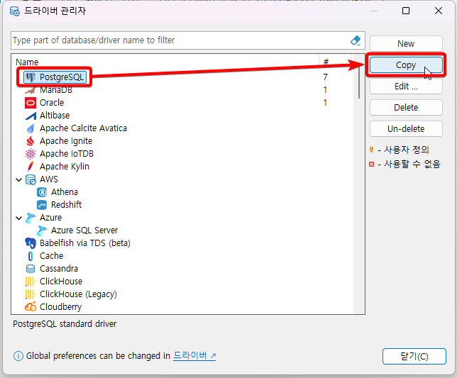 자신이 사용하려는 DB 드라이버를 선택하고, Copy 클릭합니다.