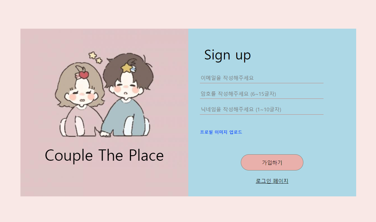 우리 팀은 데이트 코스를 알려주는 사이트이기 때문에 약간 핑크빛 + 파스텔 톤으로 컨셉을 살리려고 노력했다.