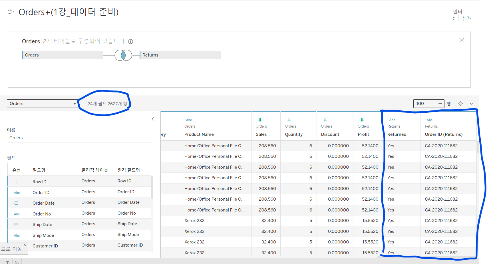 현재는 'Order ID'를 키 값으로 연결된 데이터!