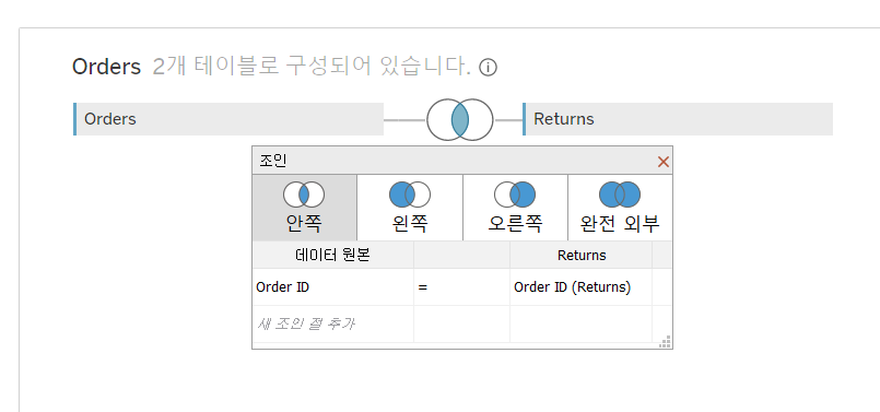 중간에 다이어그램을 클릭하면 조인 유형을 변경할 수 있음!