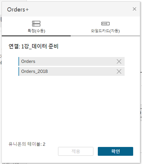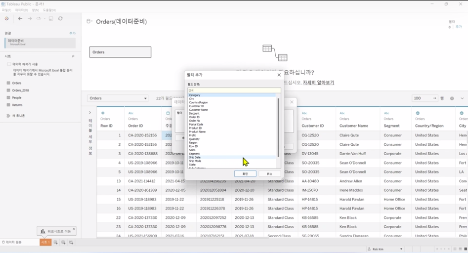 시트에 있는 테이블 지정 후 데이터를 [데이터 준비]에 있는 데이터로 끌고 옴.