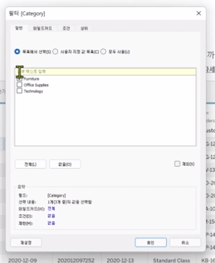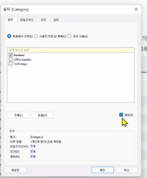 반대로, 항목 선택 후 [제외]를 누르면 항목 선택한 값을 제외하고 볼 수 있음.