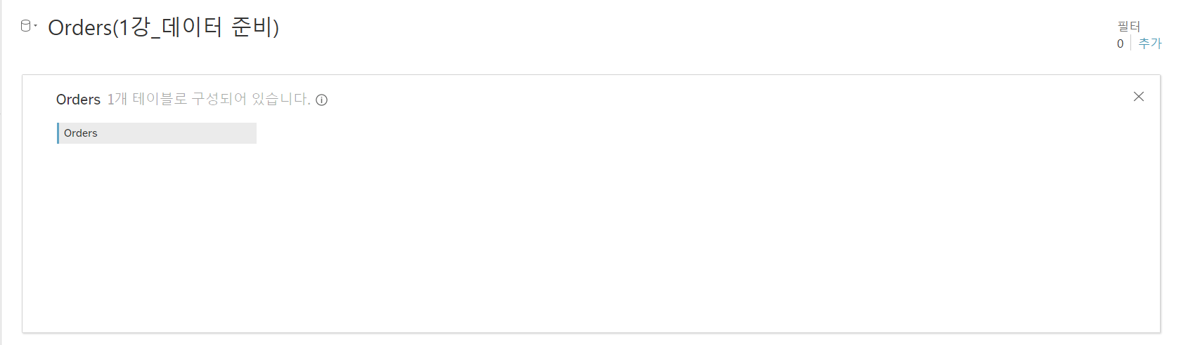 아래의 테이블 즉, 사용하기 위해 [데이터 준비]에 가져다 놓은 테이블을 로지컬 테이블이라고 함.