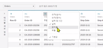데이터 타입을 선택하여 원하는 형태로 쉽게 변경할 수 있음.