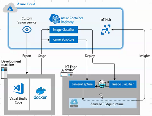 - Docker에서 Azure Cloud 거쳐서 IoT Edge runtime으로