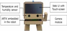 - IBM의 TJBOT의 하드웨어 구조를 기반으로 하며 터치가 가능한 전면부 스크린, 병실 및 환자의 상태를 시각적으로 확인하기 위한 전면부 카메라, 병실의 온/습도 환경을 체크하기 위한 센서, 그리고 아틱 클라우드와의 연동을 통하여 병원/병실의 다양한 정보를 제공하기 위한 게이트웨이 소프트웨어가 탑재되어 있는 아틱 디바이스로 구성