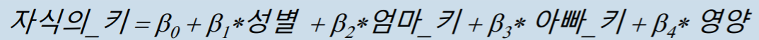 자식의 키는 아마도 부모의 키와 성장기의 영양섭취와 관계 있을 것이라는 가설하에 자식의 키를 추정하는 통계적 모델을 만들자