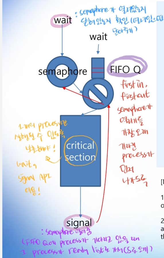 if (--(semptr->scount) < 0) { /* 😍scount는 기본적으로 1. 하나 줄였더니 0보다 작더라 = 원래 1보다 작았다 = 이미 critical section에 누가 들어와 있어서 바로 세마포어 사용 불가능하다😍 */