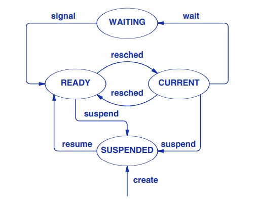 struct procent *prptr; /* ptr to process’ table entry */
