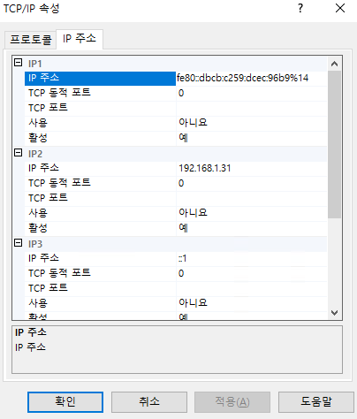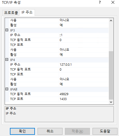 디비 설치 후 sql Server 매니저 들어가서 포트번호 1433 적어줘야함