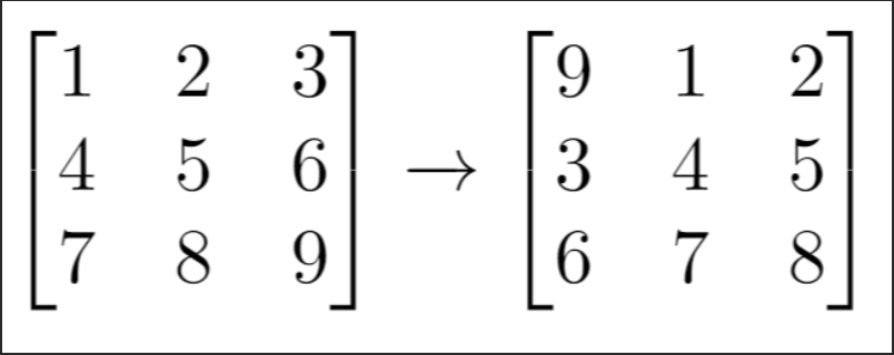 mxn 크기의 2차원 배열이 주어질 때 이 행렬을 다음의 과정을 거치면 1번 shift하는 것이라고 정의한다