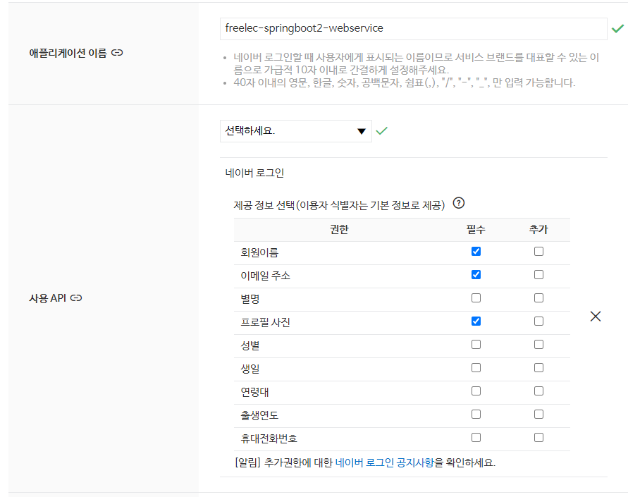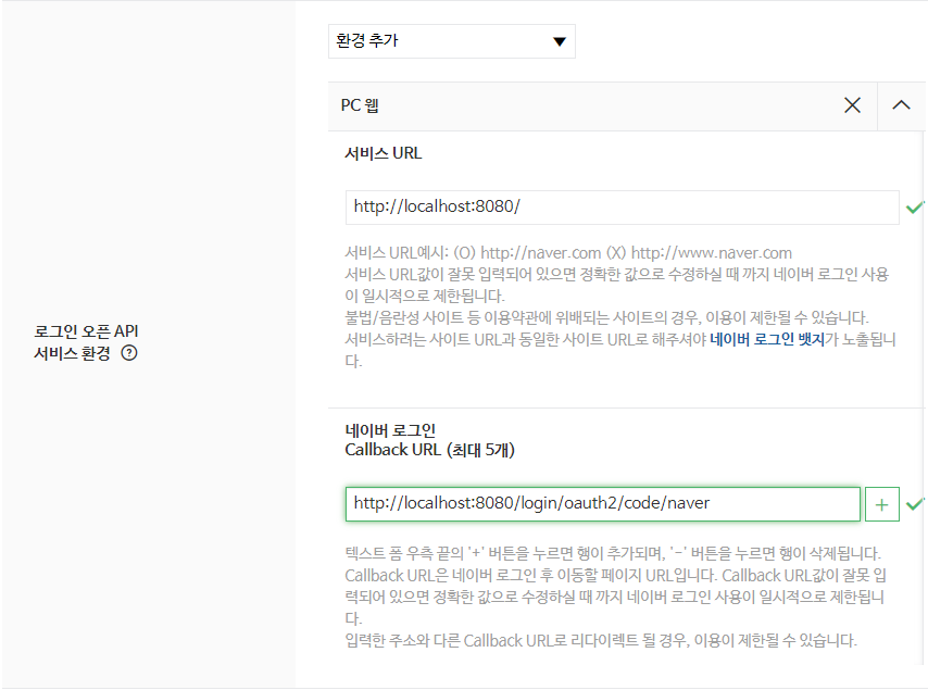 여기서는 /login/oauth2/code/naver로 등록하자. 등록을 완료하면 다음과 같이