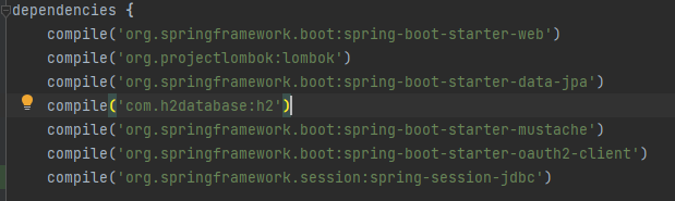 build.gradle에 의존성을 등록한다. spring-session-jdbc역시 현재 상태에선 바로 사용할 수 없다.