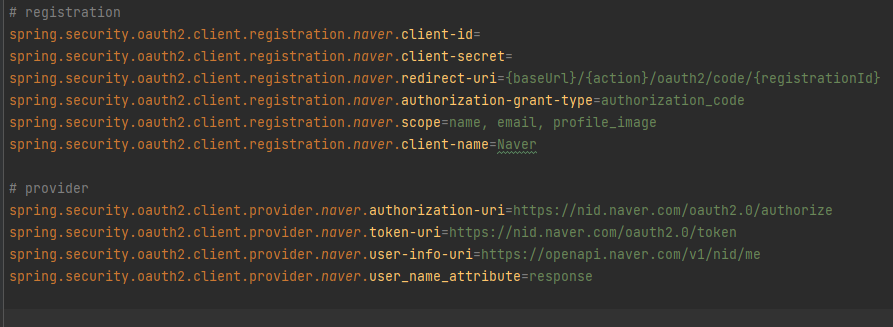 구글 로그인을 등록하면서 대부분 코드가 확장성 있게 작성되었다 보니 네이버는 쉽게 등록이 가능하다.