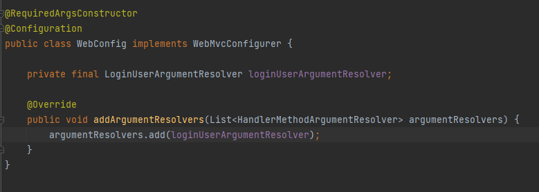 이렇게 생선된 LoginUserArgumentResolve가 스프링에서 인식될 수 있도록