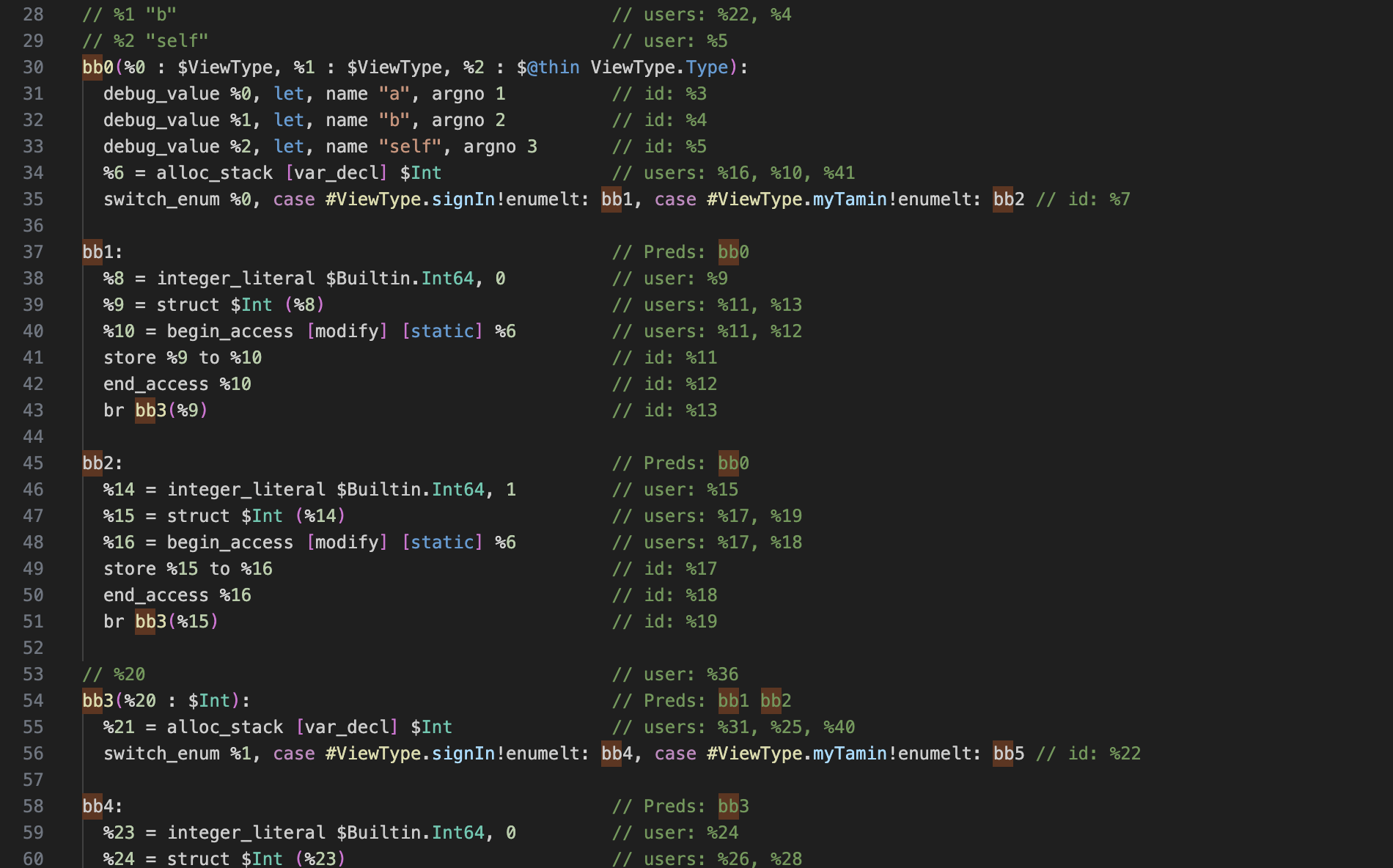 switch_enum %1, case #ViewType.signIn!enumelt: bb4, case #ViewType.myTamin!enumelt: bb5 // id: %22