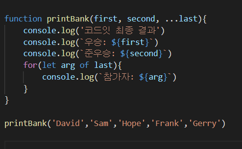 그리고 파라미터가 한개면 소괄호를 안해도되지만, 두개 이상이면 하는게 맞다.
