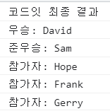 결과값 : 반복문을 이용해 우승자,준우승자를 제외하고 불러온다.