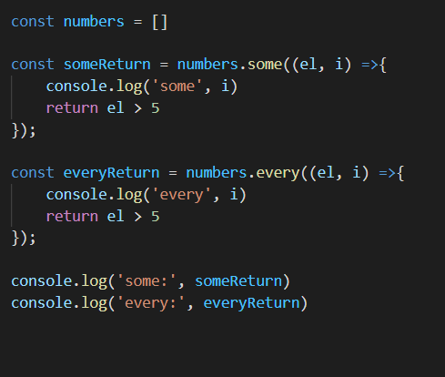 • 그 반면에, every는 모든 요소가 조건을 충족시켜야 되서 처음 요소만 리턴 한다.