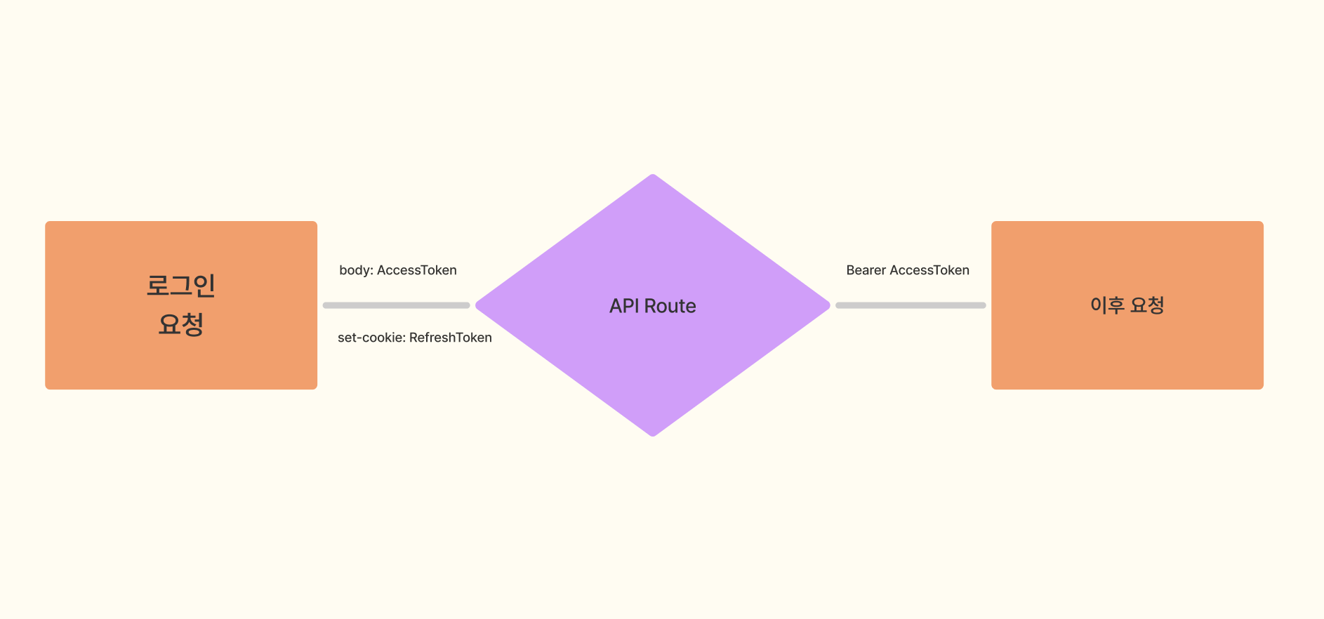 해결책은 넥스트의 서버인 라우트 핸들러를 사용하는 것이다. 라우터 핸들러는 HttpOnly 쿠키에 접근할 수 있고, 토큰의 값을 가져와 담아줄 수 있다. 라우트 핸들러를 사용함으로서, 클라이언트 사이드에서도 정상적인 통신을 할 수 있게 되는 것이다.