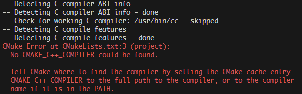 C++은 CXX로 해야함C++로 하면 CXX_COMPILER가 아닌 C++_COMPILER라고 없는 것 찾음
