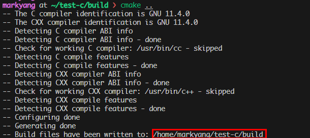 -- Build files have been written to: /home/markyang/test-c/build