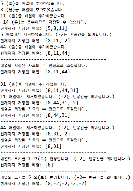 System.out.println("배열의 크기를 " + size + " 으(로) 변경합니다. (-2는 빈공간을 의미합니다.)");