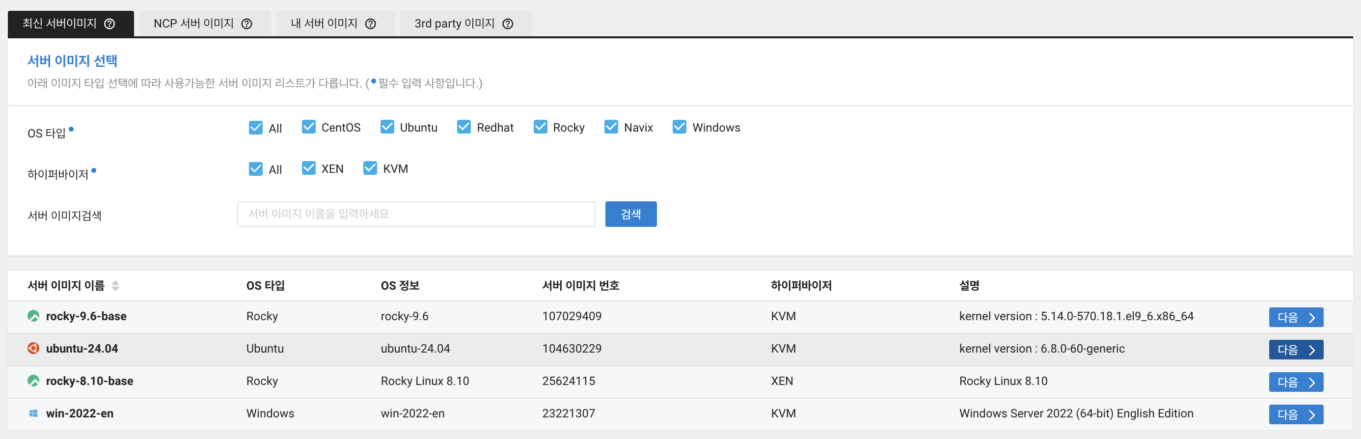 서버 생성을 누른 뒤, 원하는 OS를 선택한다.