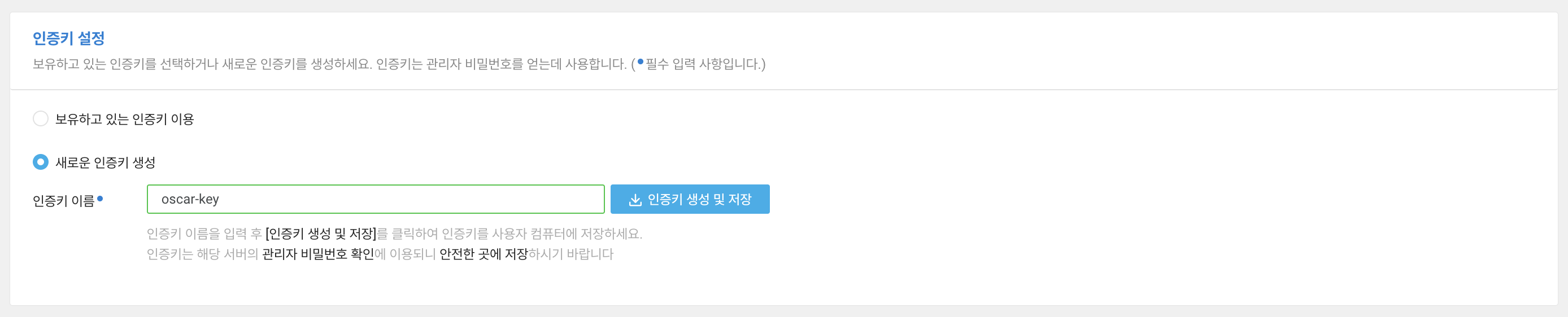 보유하고 있는 인증키(NCP에서 발급)가 있다면 그것을 사용하고, 없다면 새로운 인증키를 생성한다.