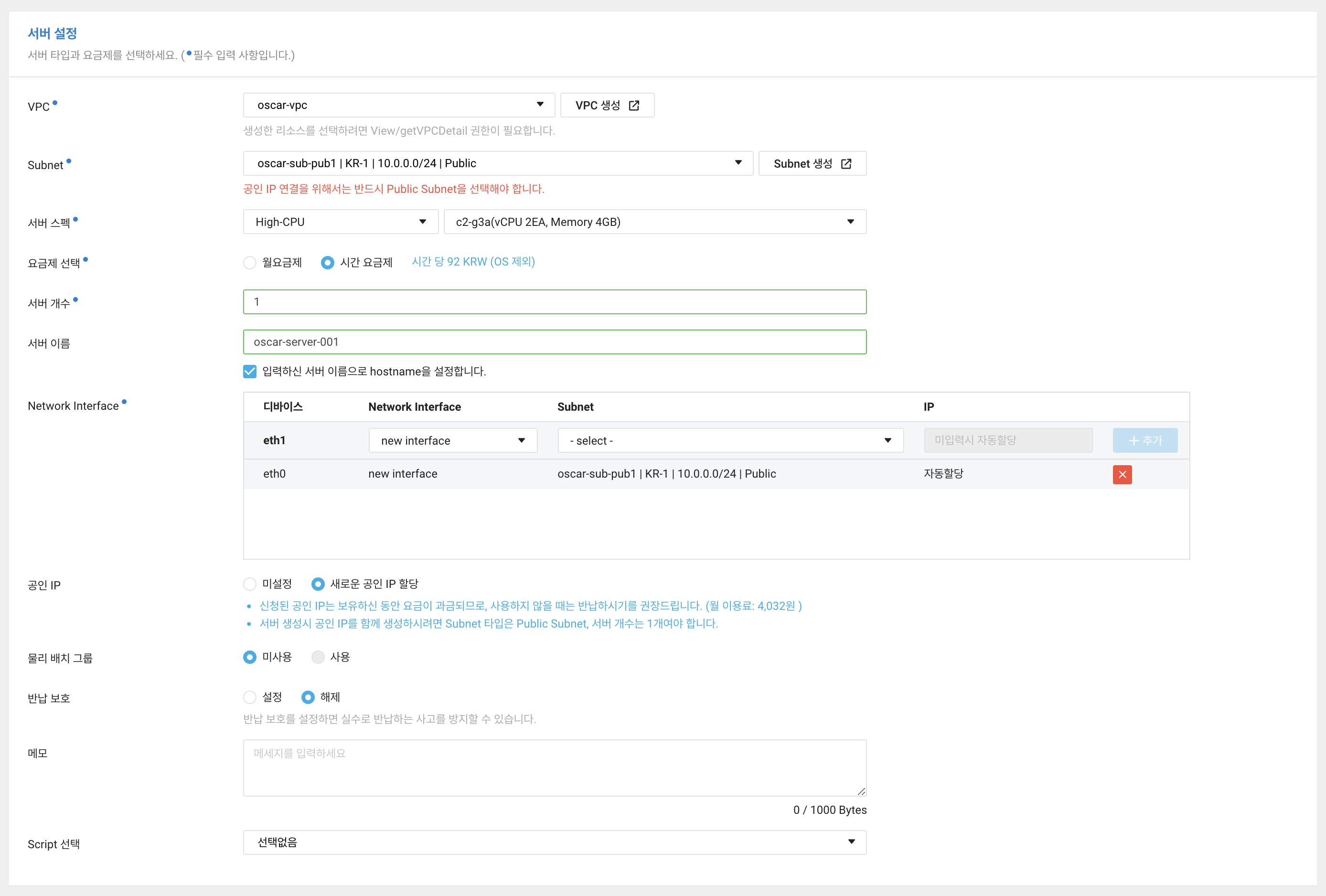 원하는 서버를 선택했다면, 서버 설정을 진행한다.