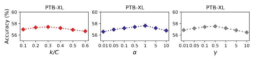 • Hyper-parameter 세 가지를 다르게 설정하여 비교 실험 결과, 모든 hyper-parameter에서 robust한 성능을 관찰할 수 있음