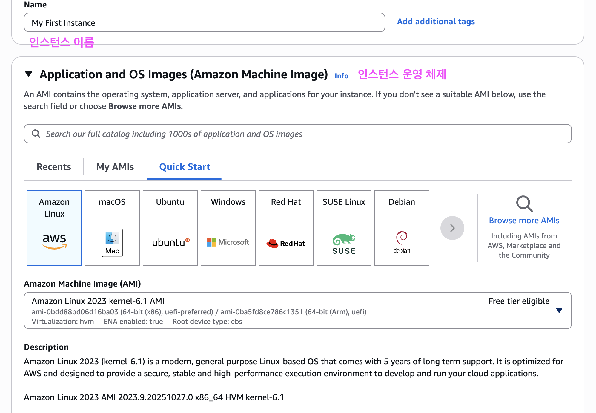 별도의 AMI를 생성해서 연결하고 싶으면 My AMIs로 연결 가능