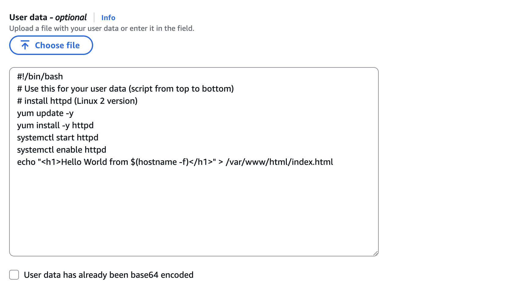 인스턴스가 실행될 때 최초로 1번만 실행될 스크립트 작성하면 된다