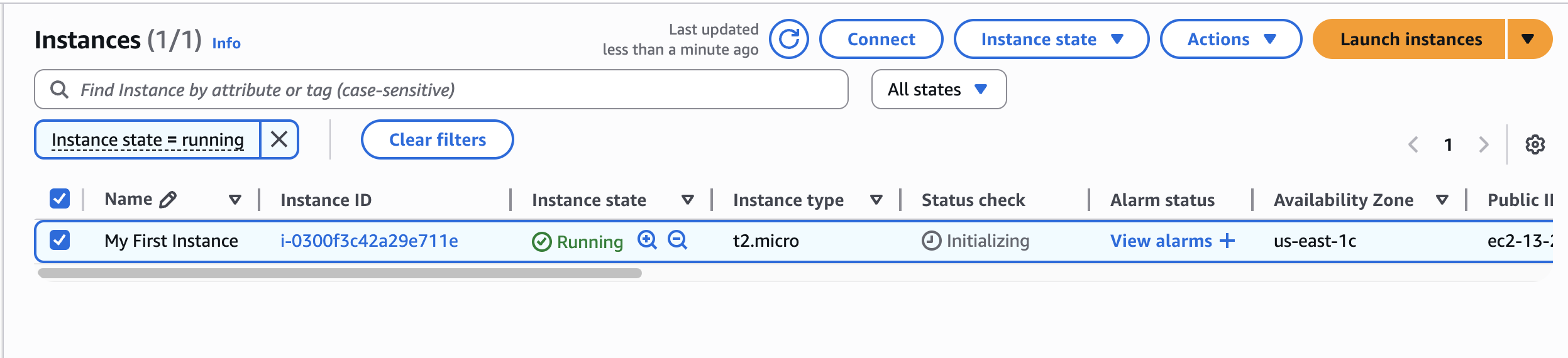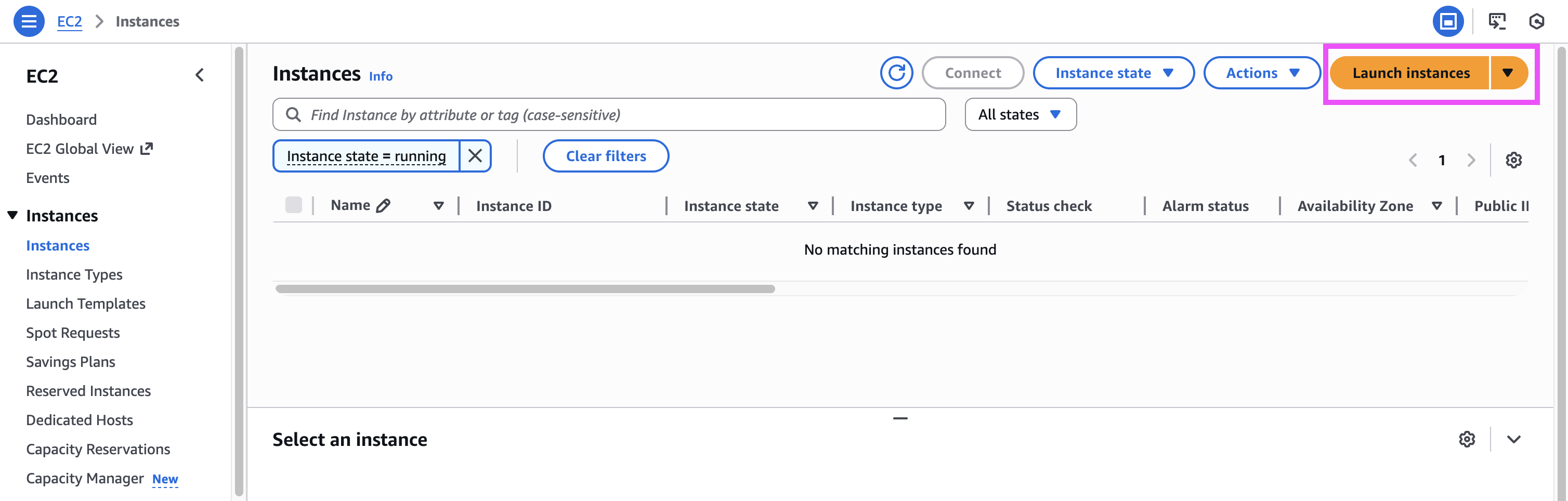 Launch instances 버튼을 클릭하고 대시보드를 보면