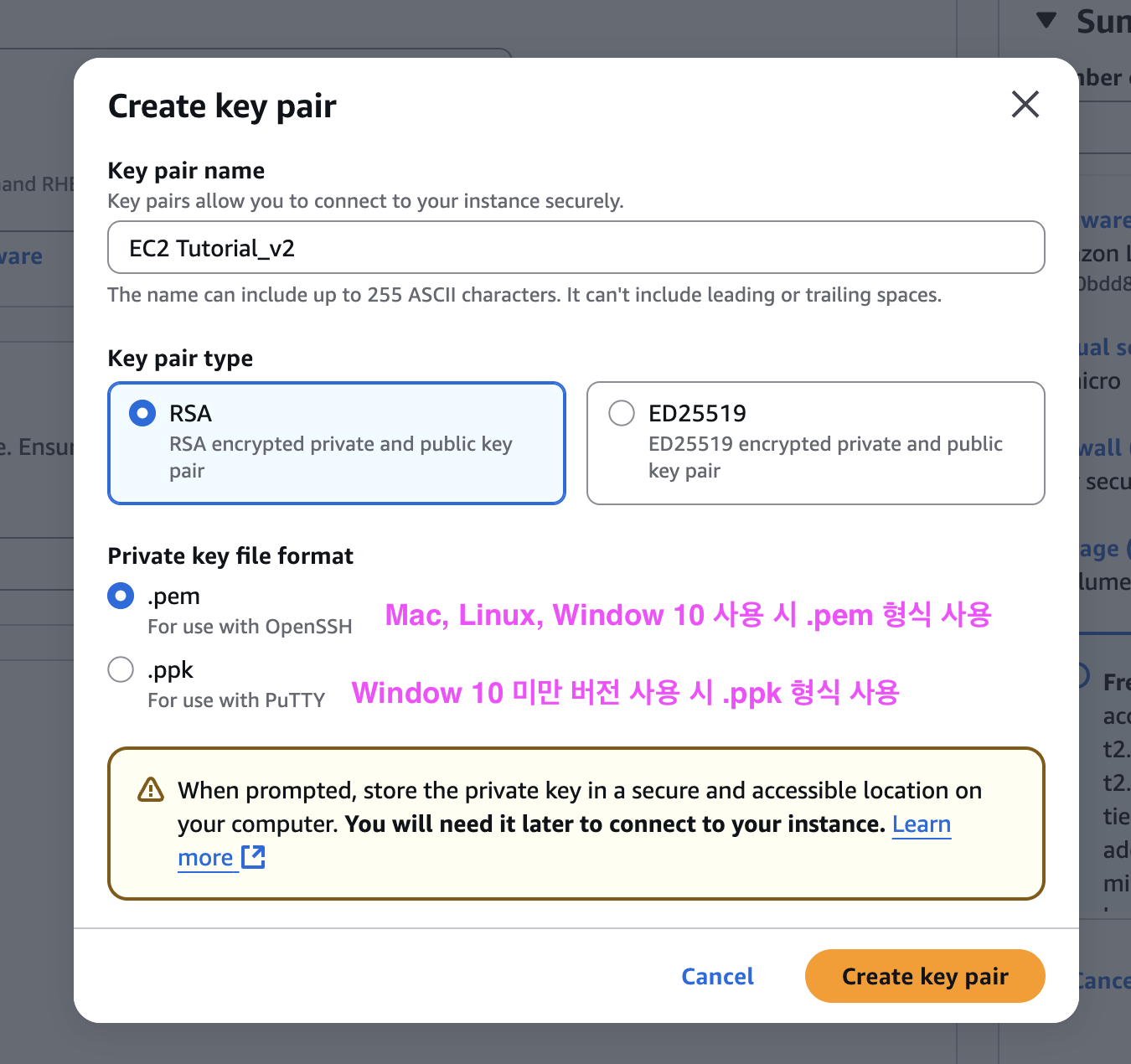 키페어는 인스턴스에 액세스하기 위해 SSH 유틸리티를 사용하는 경우에 필요함