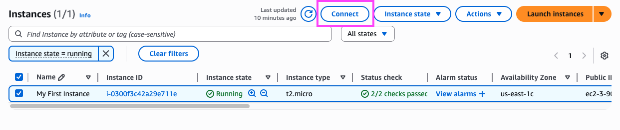 SSH 접근을 위해서는 실행중인 인스턴스의 Security Group에 22번 포트(SSH)가 허용되어있는지 확인 필요