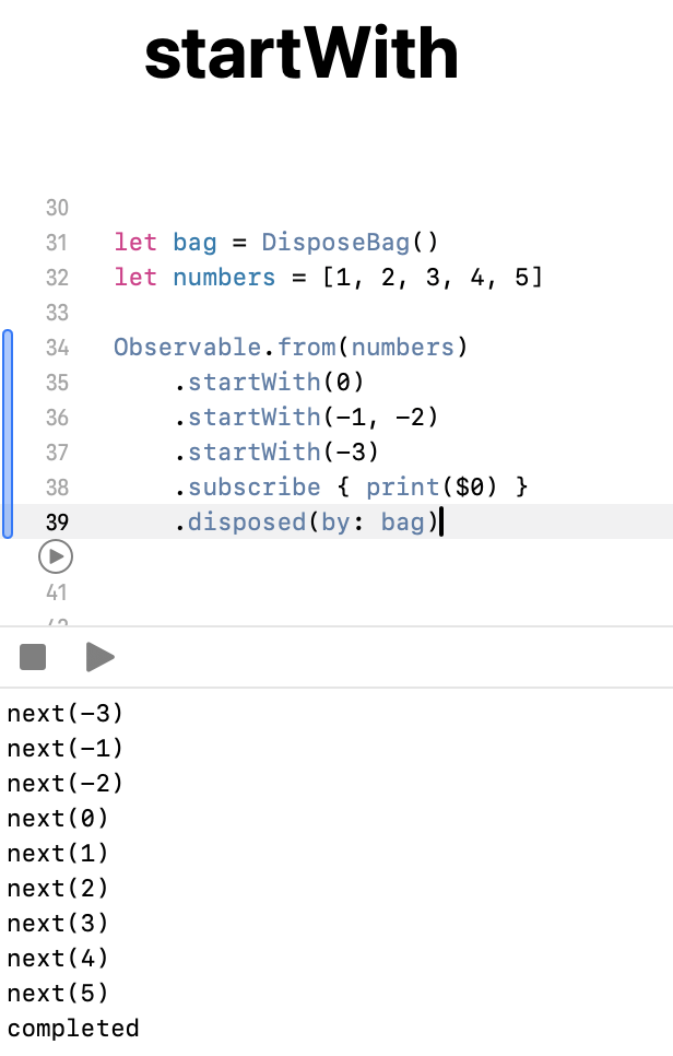 - 옵저버블 시퀀스 앞에 새로운 요소를 추가하는 연산자