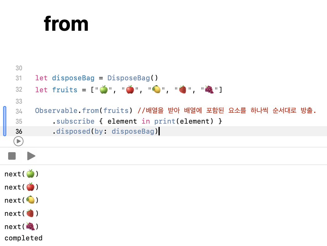 [RxSwift] just, of, from