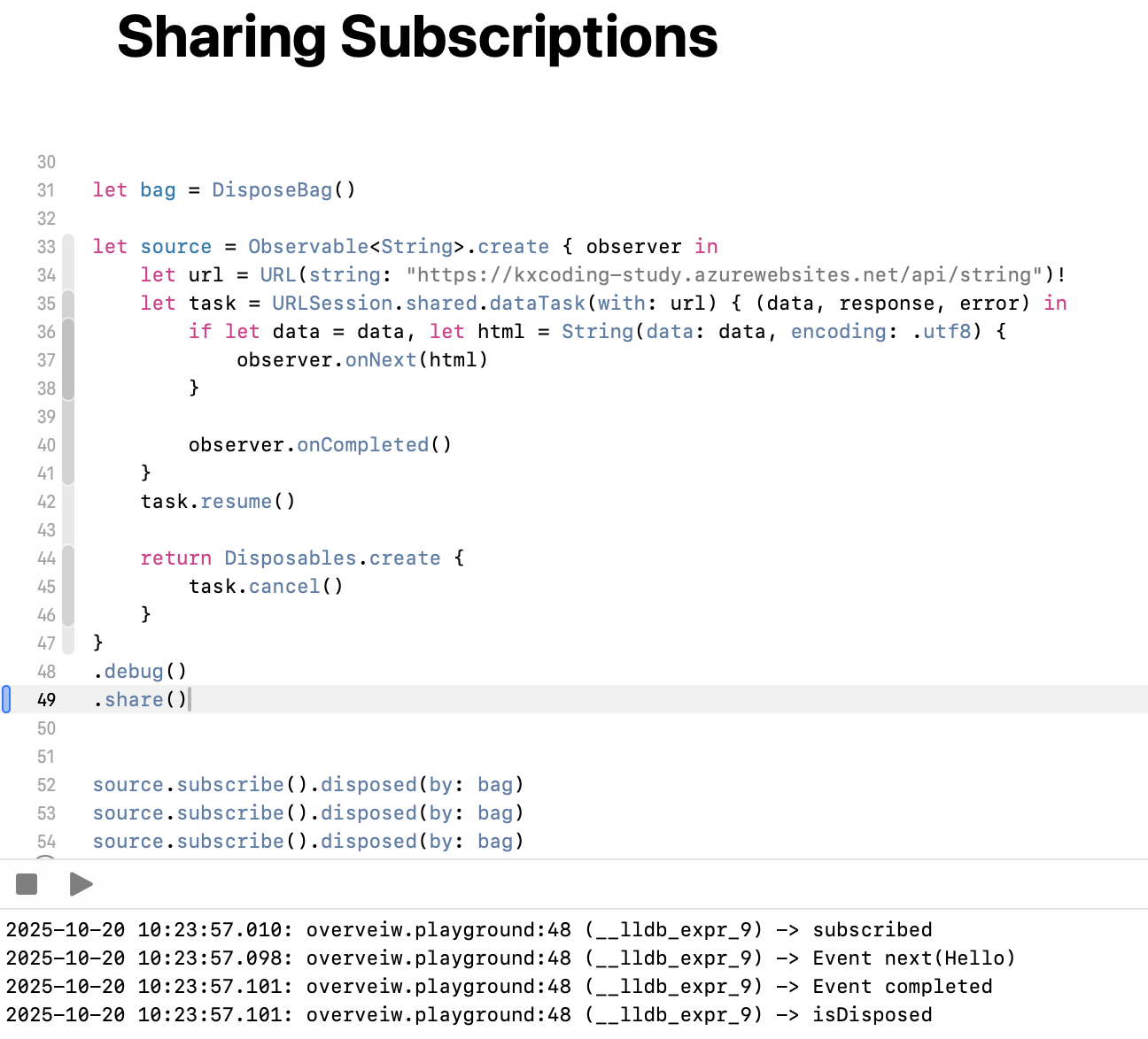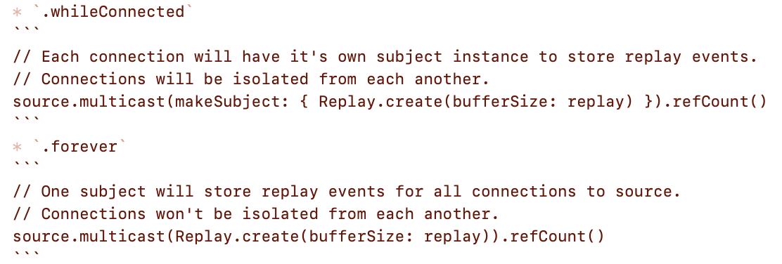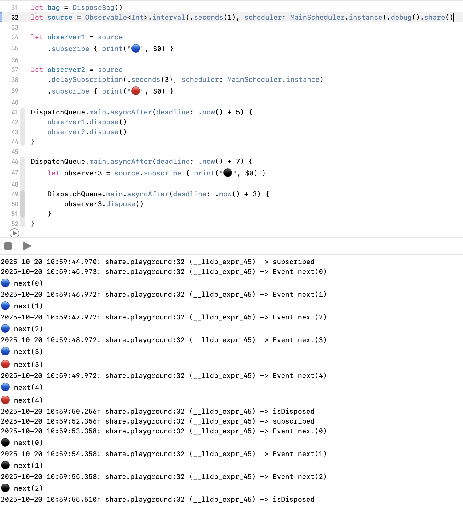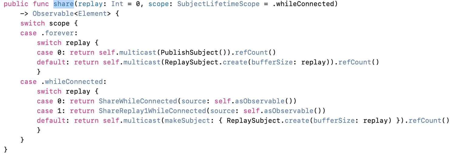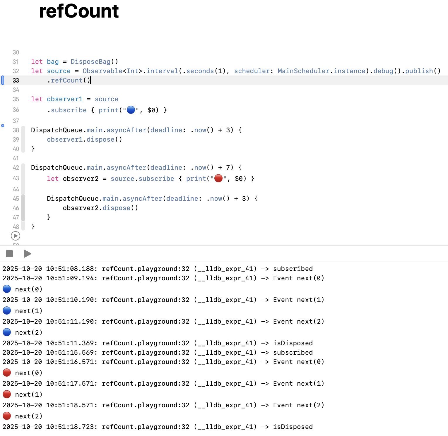 - 구독자가 없을 때 옵저버블 시퀀스의 실행을 중단하고, 구독자가 처음 생길 때 시퀀스를 자동으로 시작해주는 연산자