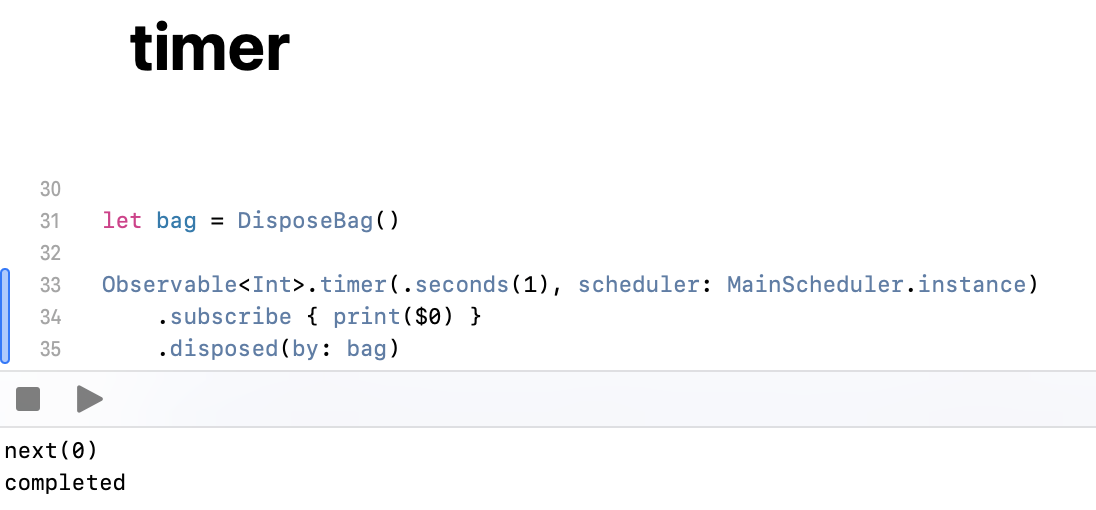 두번째 파라미터: 반복 주기(기본값 nil) -> 하나의 요소만 방출하고 종료