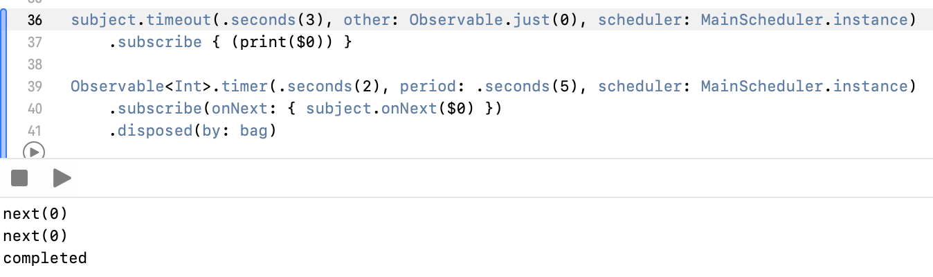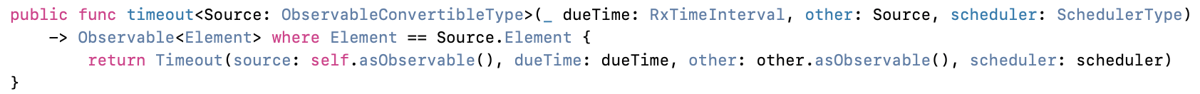 other이 파라미터로 있는 메소드의 경우, timeout될 시 에러이벤트 전달이 아닌 other에 전달된 옵저버블로 구독이 대체된다.