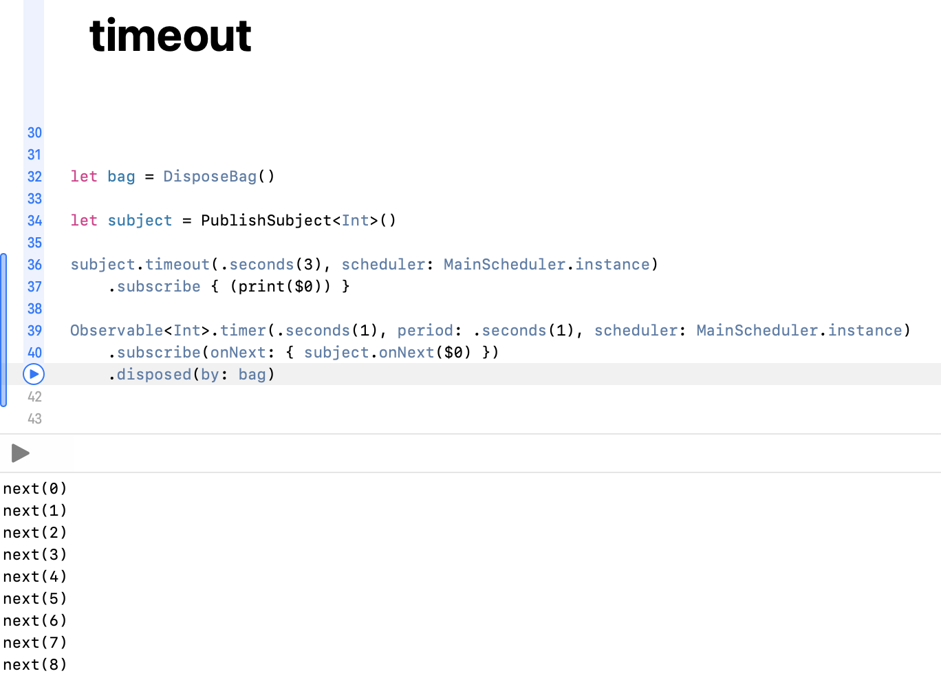 - 지정된 시간 이내에 요소를 방출하지 않으면 에러 이벤트를 전달