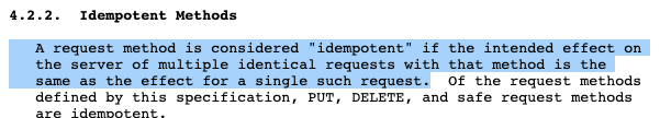 그렇다면 Rest에서 말하는 멱등성(Idempotent)의 의미는 어떤 것일까? RFC 7231 spec 문서에 따르면 아래와 같이 정의하고 있다.